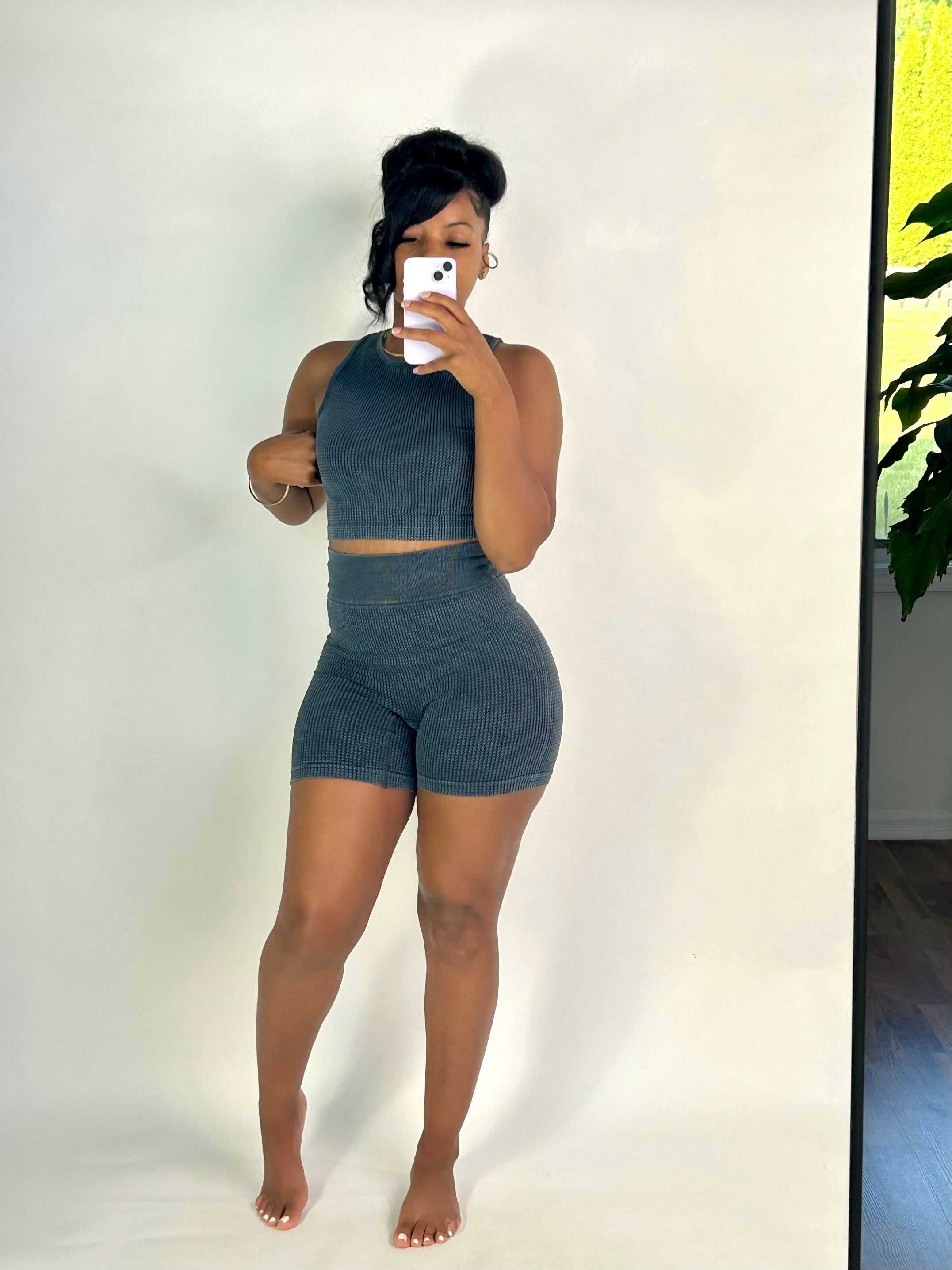 Never Basic! This set is perfect for your everyday wear! It is super comfortable and cute! The fabric is super soft! This comes in colors Sky, Heather Grey, Charcoal, and Pink! Comes in size options S/M and L/XL!